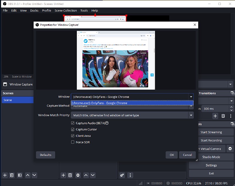 Step 5. Select chrome in OBS Window Capture.