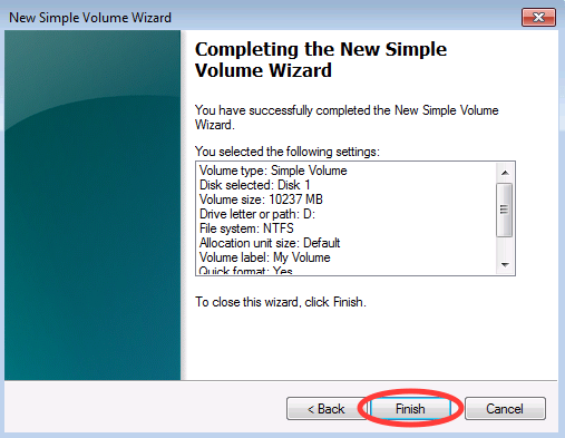 Step 6. Click “Finish” to complete the process. Your new partition is now ready to use.