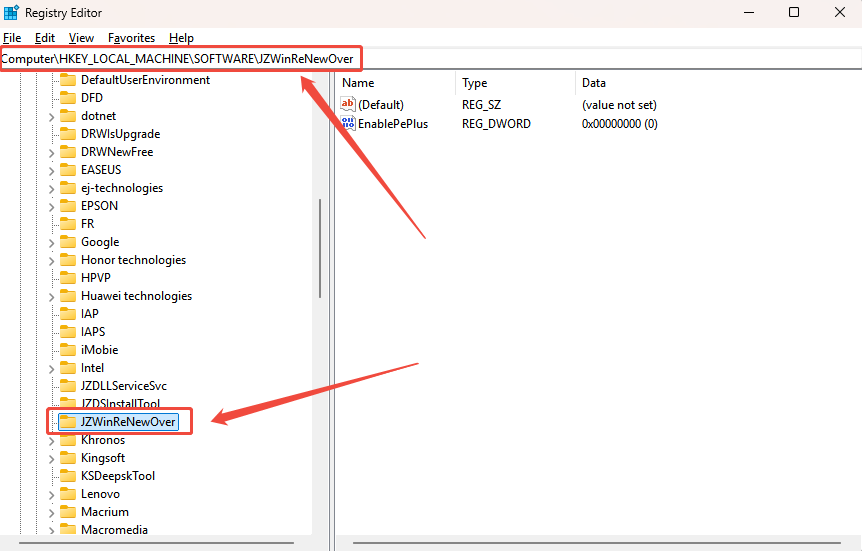 Step 2. In the Registry Editor, navigate to the following path: Computer\HKEY_LOCAL_MACHINE\SOFTWARE\JZWinReNewOver.