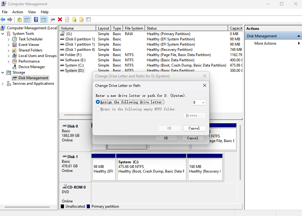 Step 3. Assign a new drive letter (e.g., G:).