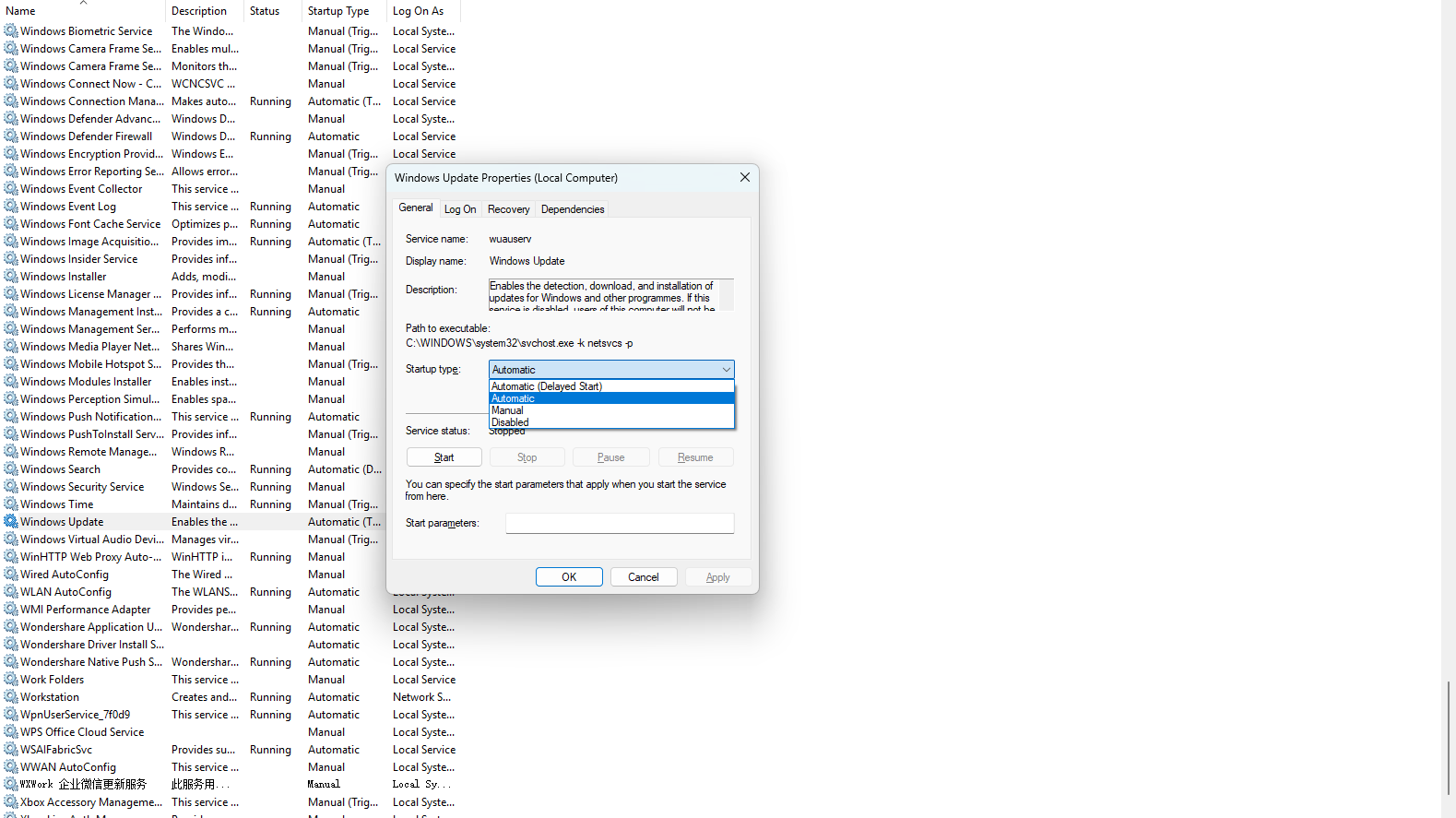 Step 3. Double-click each service, set “Startup type” to “Automatic” or “Manual”, and click “Start” if not running.