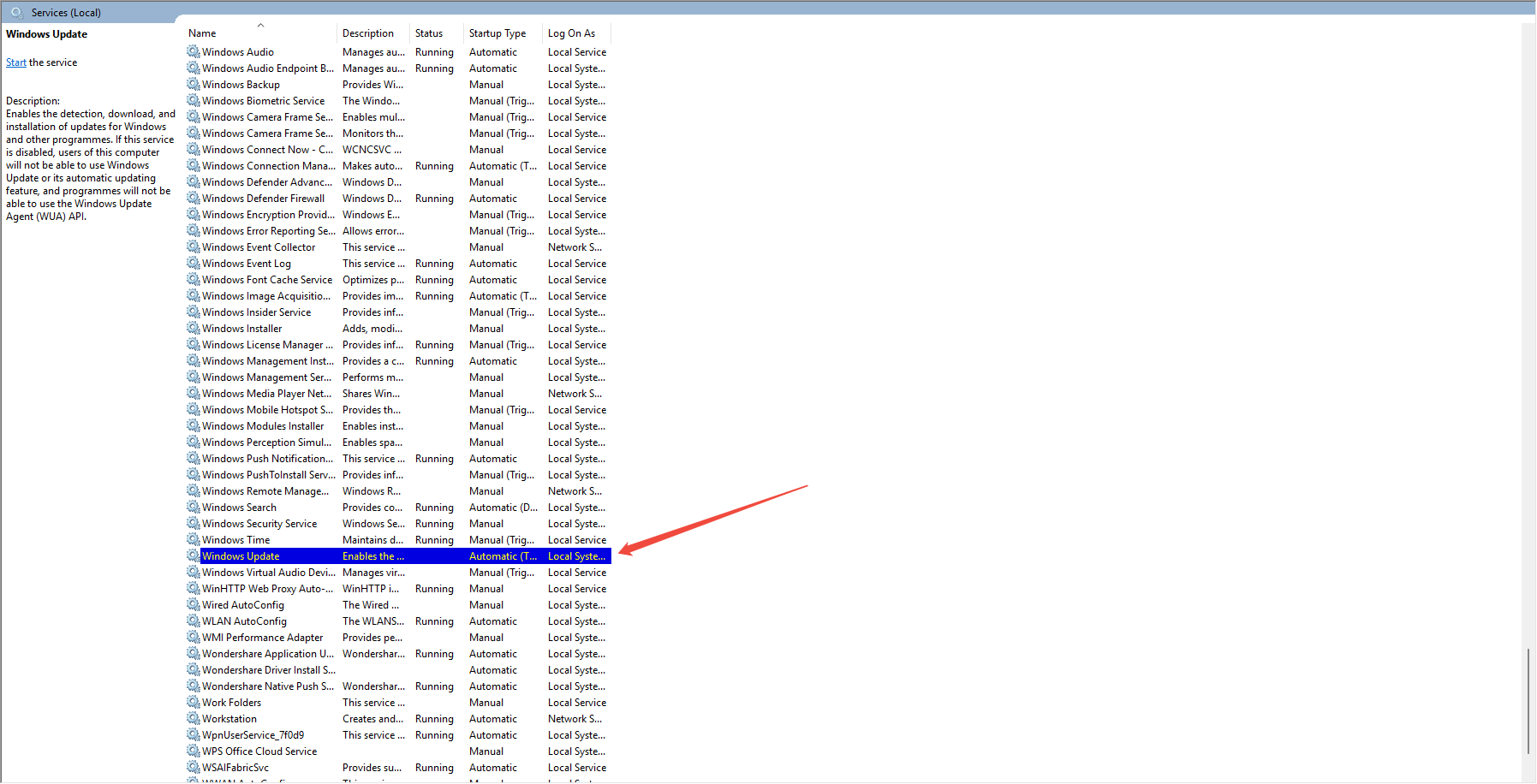 Step 2. Locate Windows Update, BITS, Cryptographic Services, and Windows Installer in the list.