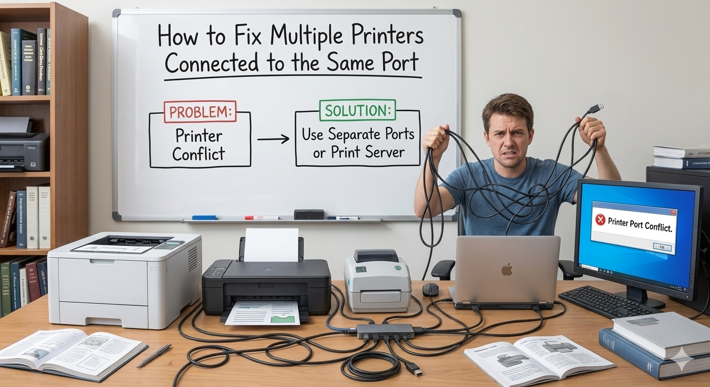 If multiple printers are connected to the same printer port on your computer only one of them will work properly...